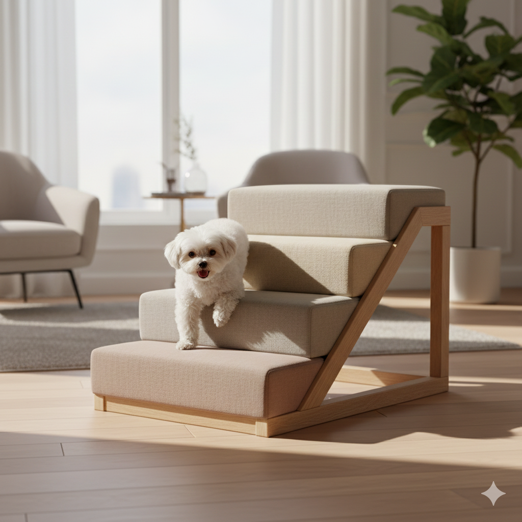 Prémium, stabil kutyalépcső kistestű vagy idősebb kutyák számára. Segíti a feljutást kanapéra vagy ágyra, kényelmes lépések és tartós, elegáns kivitelezés mellett.